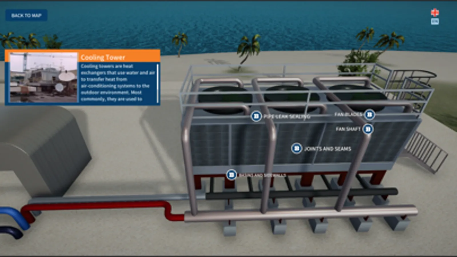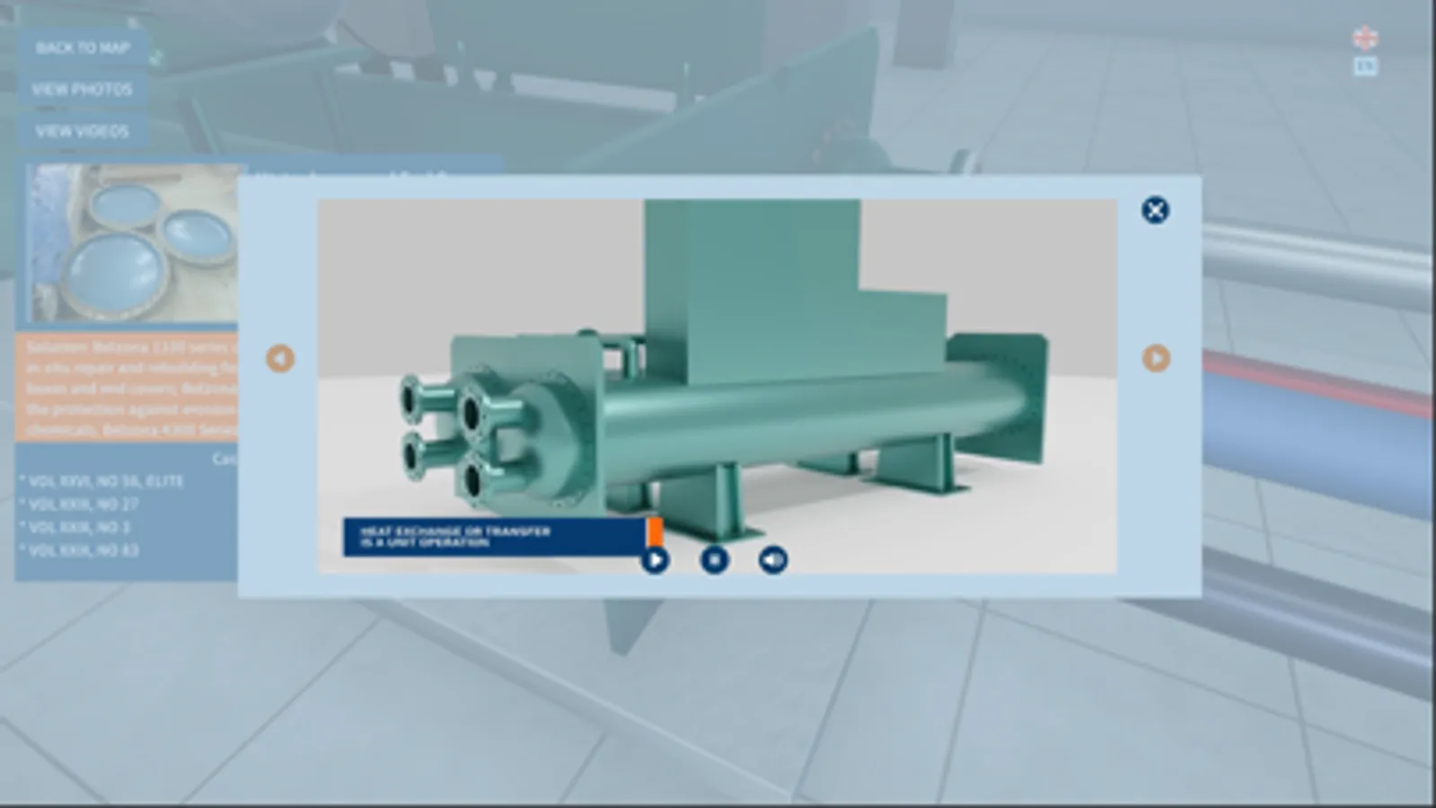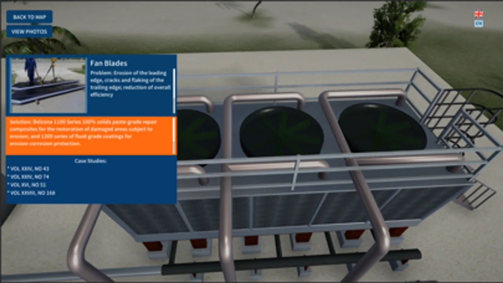 Belzona Solutions Map for the HVAC industry is an interactive 3D map showing different sections of the HVAC machinery and equipment. The map serves as a tool that helps identify where repair and maintenance problems can occur and what solutions Belzona offers. Additionally, the map provides references to relevant case studies, includes photos and videos.