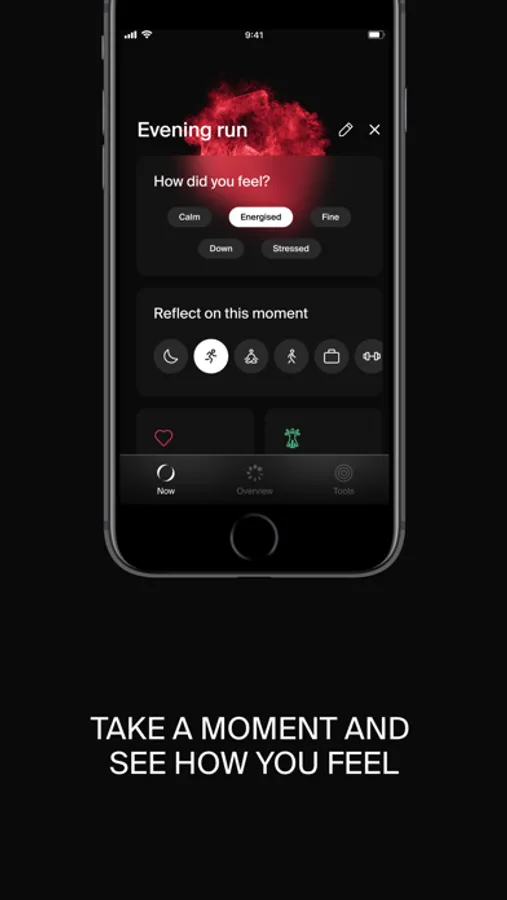The NOWATCH app is your compass for checking in on mind and body, and accessing recommendations for restoring balance.