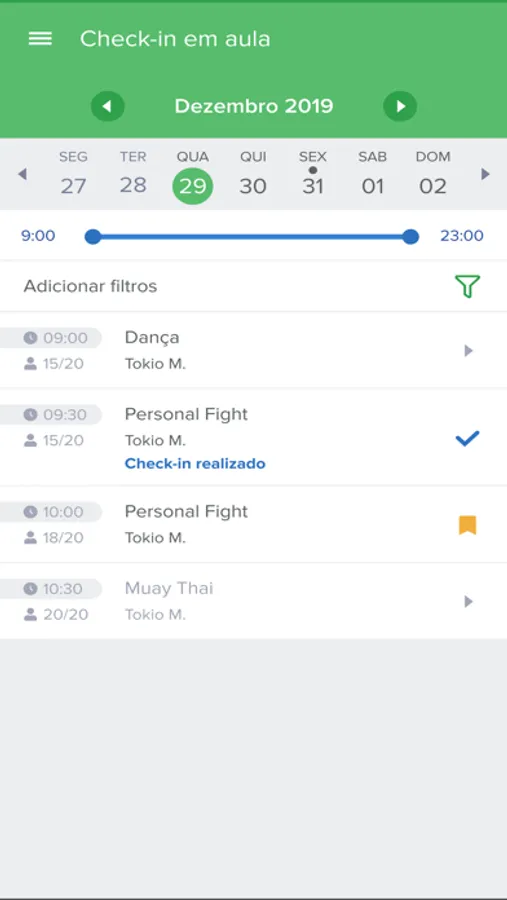 - Realizar check-in nas aulas