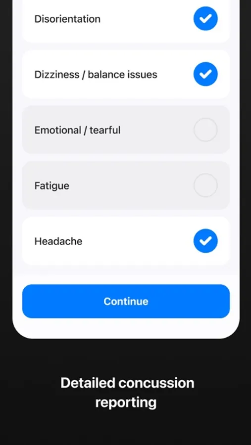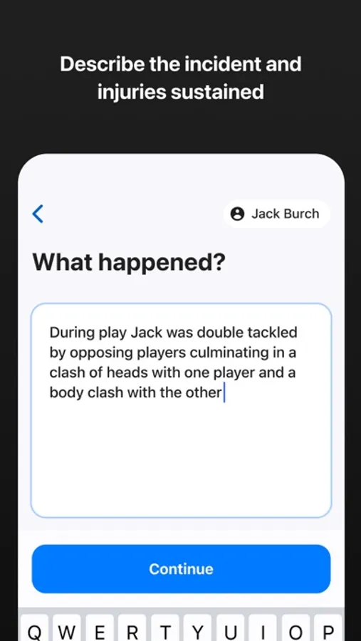 Every single report checks on whether an injury to the head has been sustained; users can record the smallest of bumps to serious signs and symptoms of concussion.