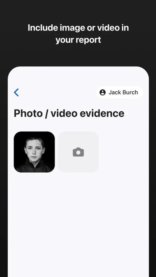 Option to take photos/videos of injury pre & post treatment, or to evidence environmental factors that contributed to the incident or injury.