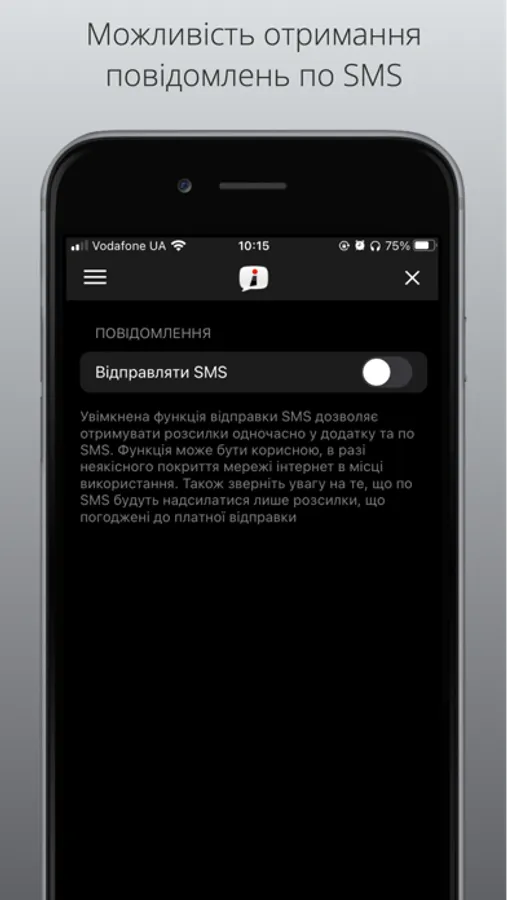 - Перемикайтеся в режим отримання повідомлень SMS, щоб не пропустити Важливу інформацію, коли можете опинитися без доступу до мережі інтернет