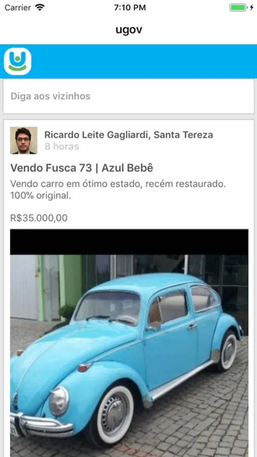 Com o aplicativo Ugov, você pode ter acesso às informações de segurança, ambientais, sociais e econômicas de sua região, em tempo real, e, também, interagir com sua comunidade de forma fácil e simples.