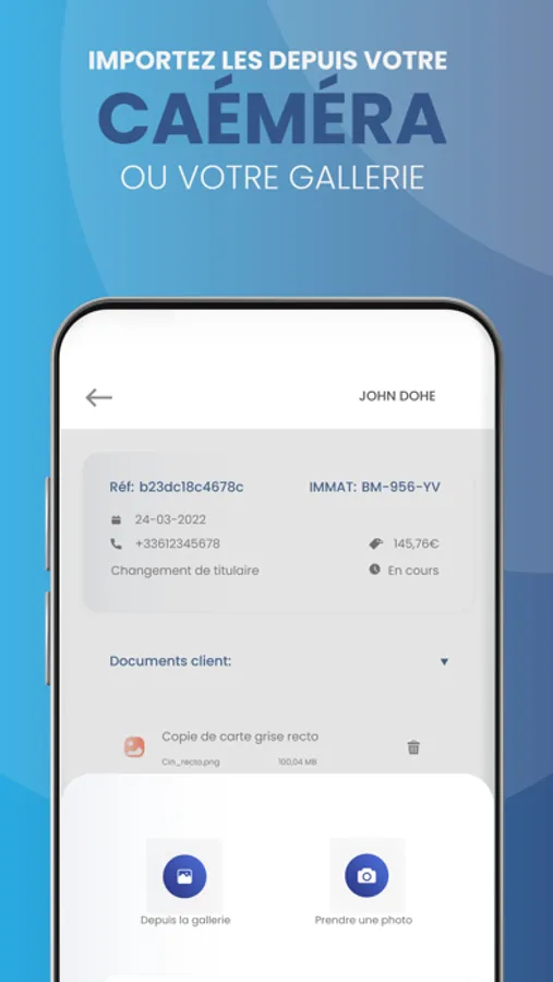 Simple utilisation, prenez vos documents en photos, pour un transfert de votre dossier en UN CLIC.