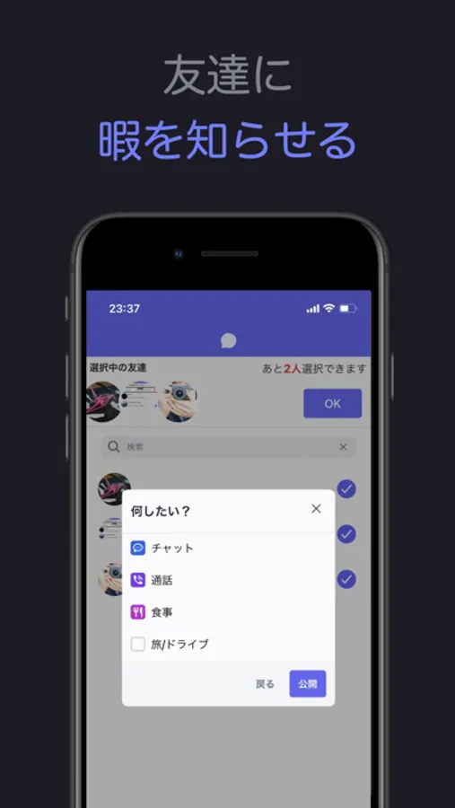 暇を知らせられる人数に限度があるため、誰かに暇を知らせる場合、友達を厳選する必要があります。
