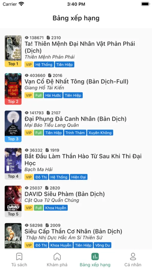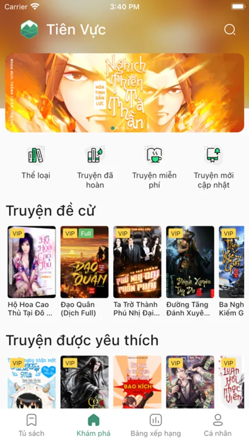 Ứng dụng đọc truyện online. Đọc truyện tiên hiệp, kiếm hiệp,... dịch chất lượng cao