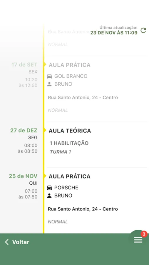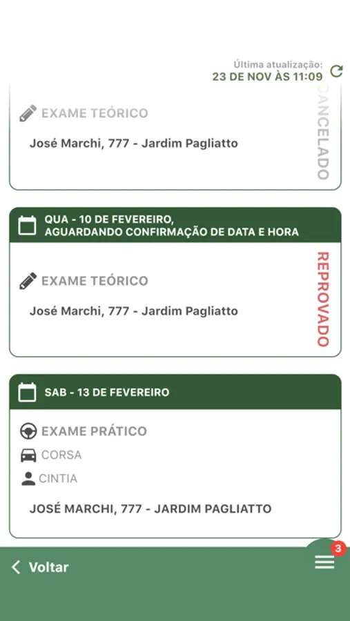 O aluno será avisado em tempo real os resultados dos exames prático e teórico.
