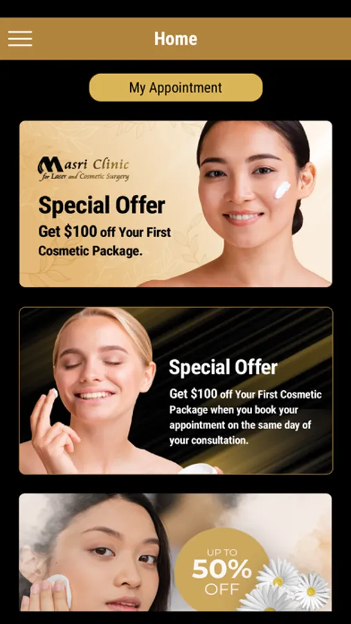for better treatment. The application is also providing information to users about promotions and events available from time to time. Patients can view their current appointments as well as previous appointments.