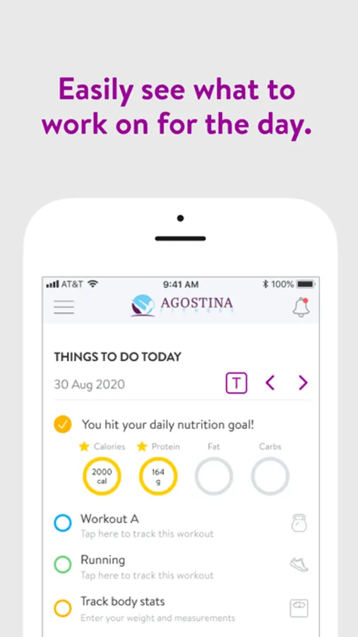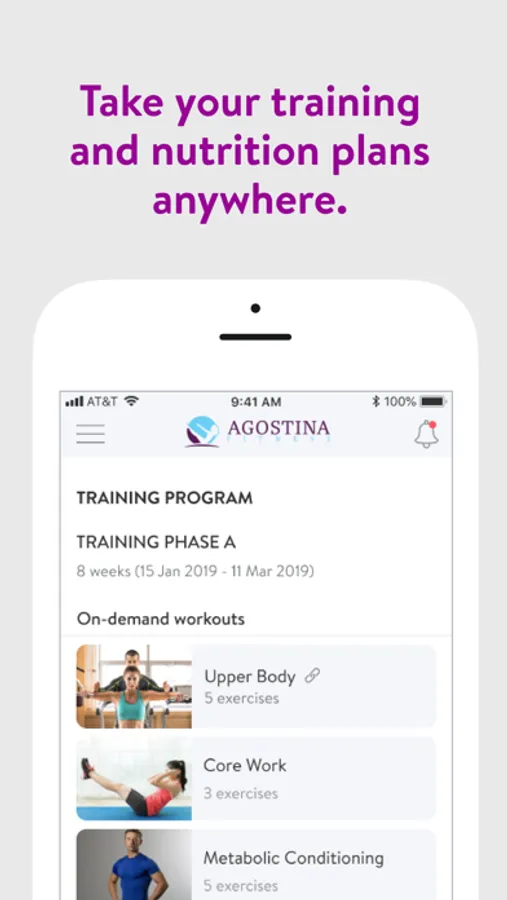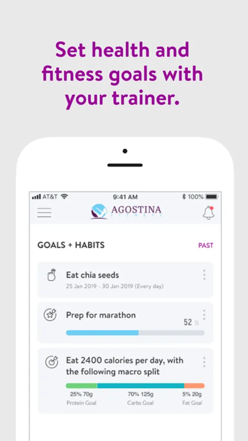 With the Agostina Fitness App, you can start tracking your workouts and meals, measuring results, and achieving your fitness goals, all with the help of your personal trainer.