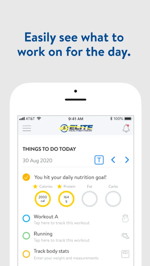 With the Elite Health and Fitness App, you can start tracking your workouts and meals, measuring results, and achieving your fitness goals, all with the help of your personal trainer.