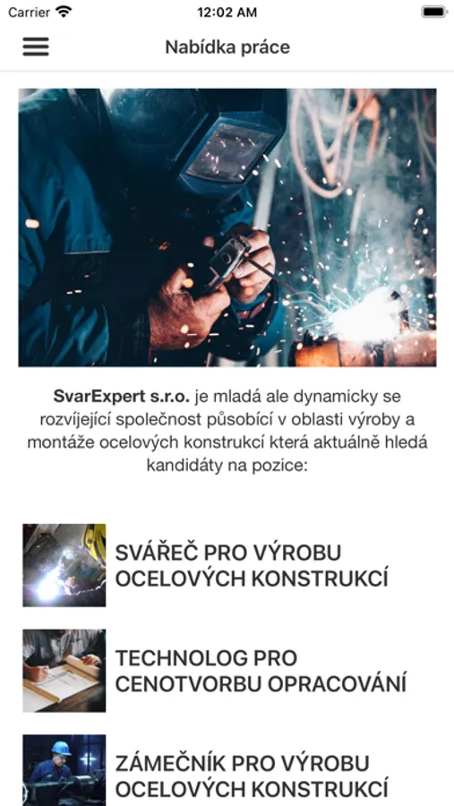 SvarExpert s.r.o. je vývojová organizace, která působí v oboru svařování. Zabýváme se supervizí, tvorbou procesu s ohledem na výrobkové normy, základními požadavky dle specifikací, dohledem nad systémem řízení, kompletizací, certifikací dle ISO. Spolupracujeme s akreditovanými zkušebnami, výrobci a dodavateli svařovací techniky. Specializujeme se na průmyslové podniky a koncové zákazníky.