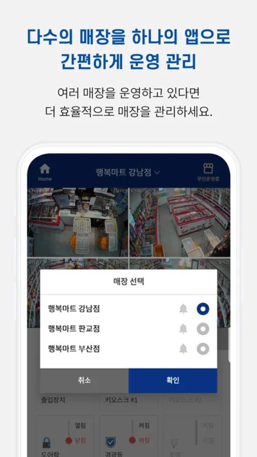 1) 복수매장 운영: 다수의 매장을 하나의 앱으로 간편하게 운영 관리합니다.