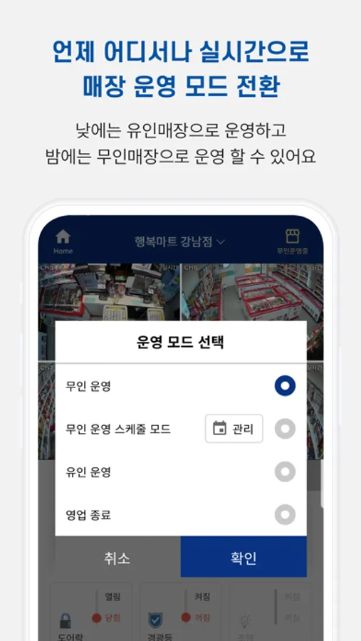 2) 운영모드 선택: 언제 어디서나 실시간으로 매장 운영 모드를 선택합니다.