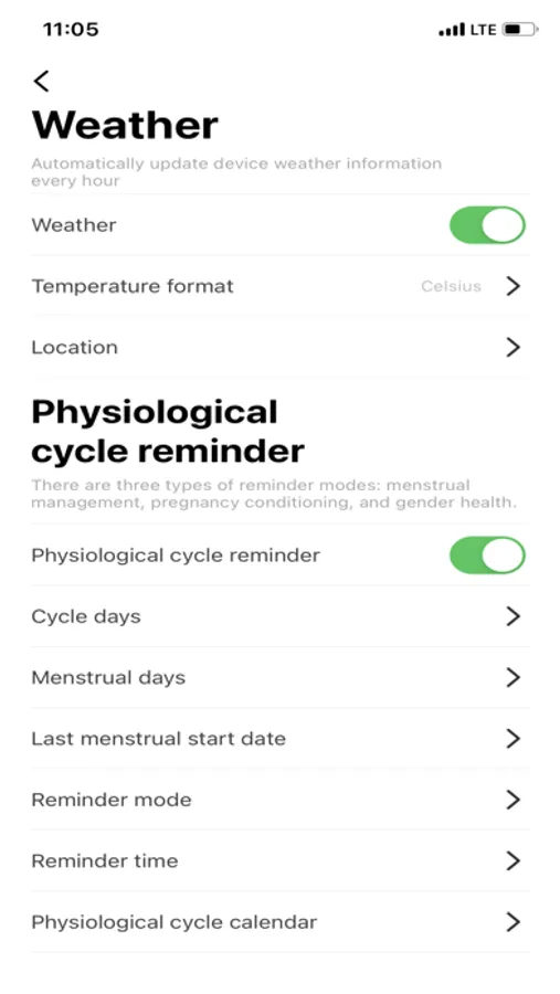 In the application, you can set up receiving notifications from certain messengers and social networks, set reminders for activity, drinking water, or reminders about the physiological cycle.