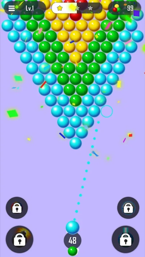Fun and addictive bubble shooting game! Clear all bubbles on the screen to make them level and try to get 3 stars on each level.