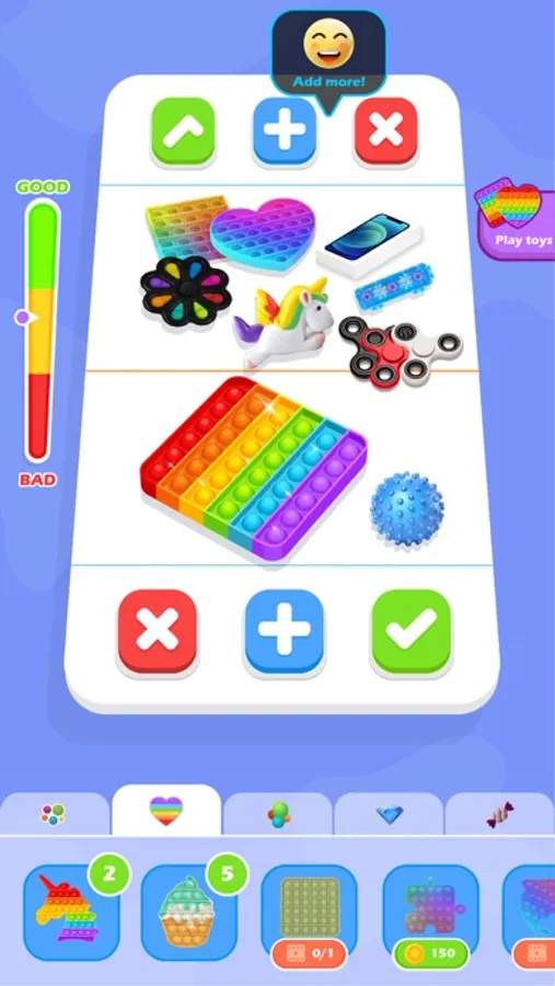 You can also play with your toys: Pop It, Squishy Toys, Squishy Ball, Dimpl...