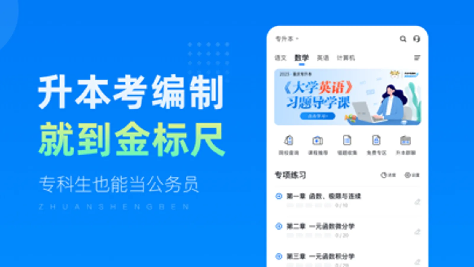 金标尺专升本APP上市以来,好评如潮,引领专升本考试备考新潮流。