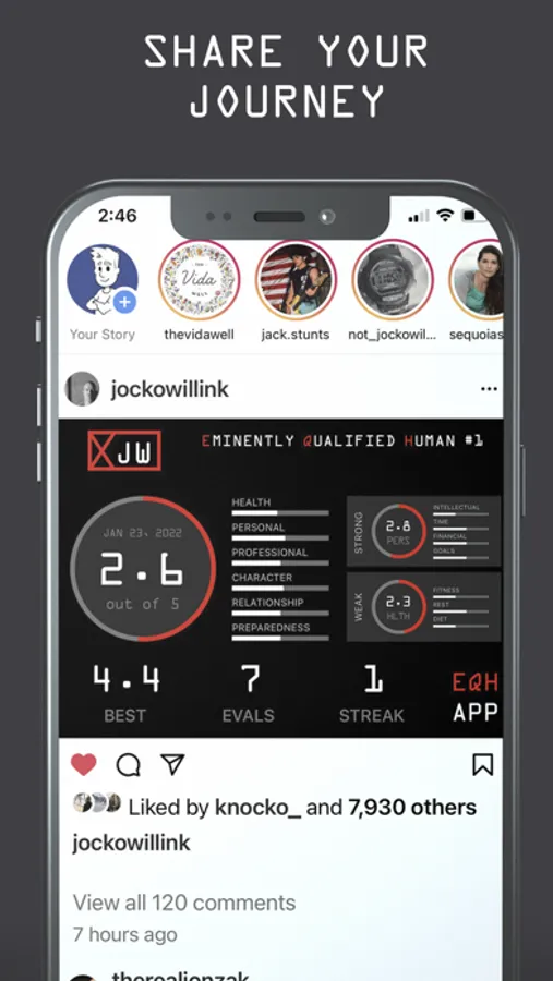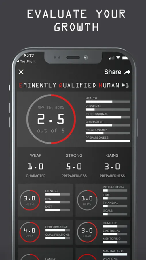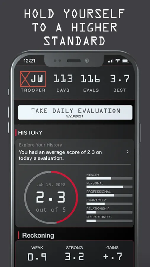 The Jocko EQH App is your ultimate weapon in the war against weakness and complacency. It is built for those that strive to become better at the things in life that matter—providing users with a system for daily self evaluation across six lifestyle categories and eighteen sub categories. If you hold yourself accountable for reaching your maximum potential—if you aspire to become an Eminently Qualified Human… then come GET SOME.