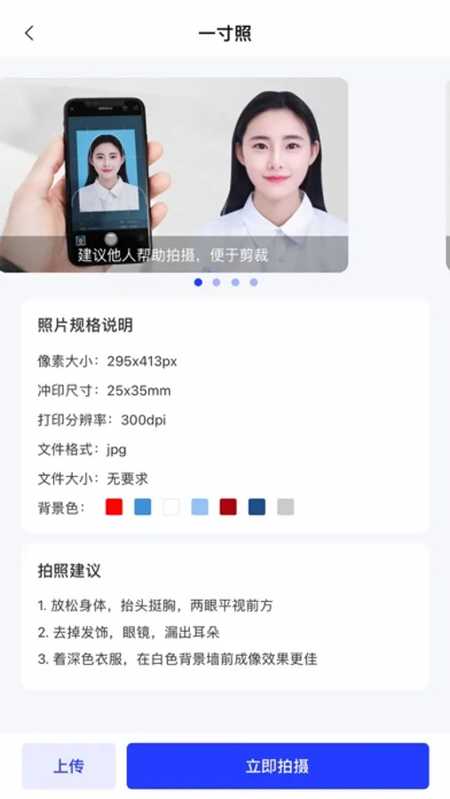 电子证件照——自助式证件照是一款智能拍摄证件照的软件。智能软件有着人性化、拍摄多样化、美颜自然化、操作智能化、冲印便捷化等一系类特色功能,简单直接的操作流程,直接在线冲印即可完成,省时又省钱。智能证件照,专业的证件照制作平台,满足你所有的证件照需求。