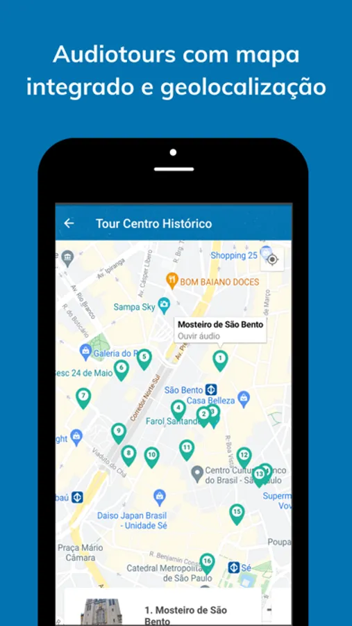 Oferecemos passeios audioguiados em São Paulo, Rio de Janeiro, Santos, Ilhabela e Porto Alegre. Em breve estaremos em mais cidades!
