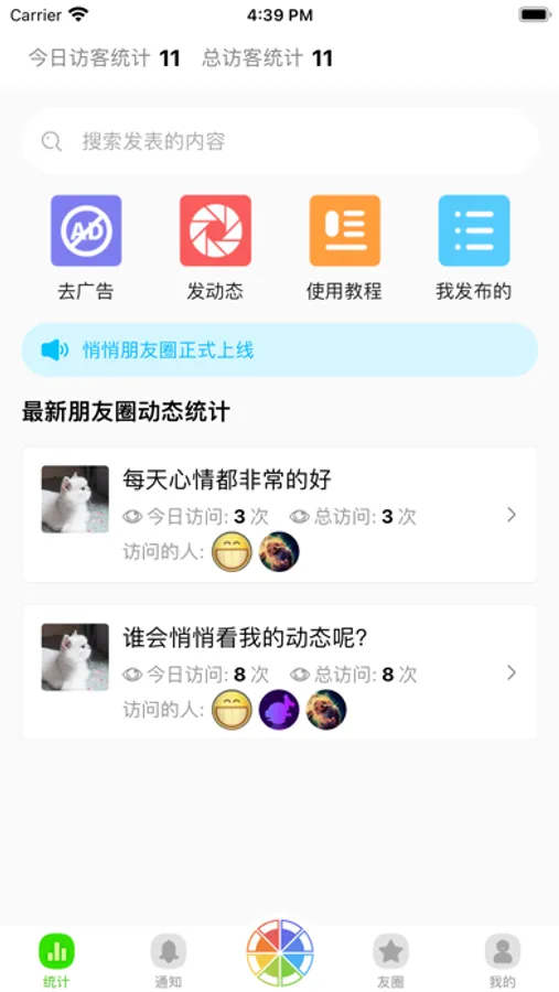 3、发布动态到悄悄朋友圈,可以看到谁看了我的悄悄朋友圈访客记录