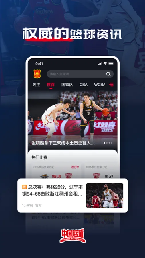 在中国篮球APP,国家队、全运会、CBA、WCBA、NBL、三人篮球、青少年篮球、社会篮球等各类赛事资讯应有尽有,权威、及时、丰富!