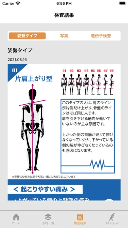 お客様の「姿勢タイプ」、「遺伝子検索」の結果が閲覧できます。