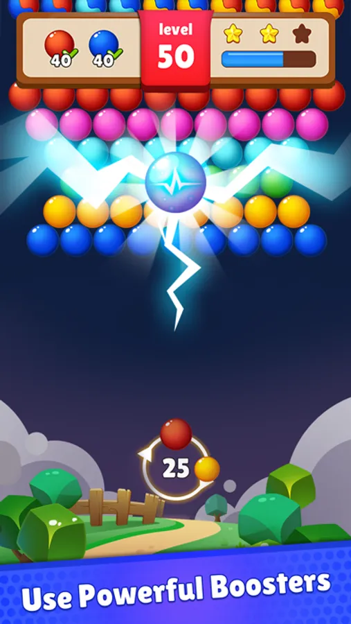 Continuous lucky shot will activate your bubble shooter boosters and you can pop the stage easy!