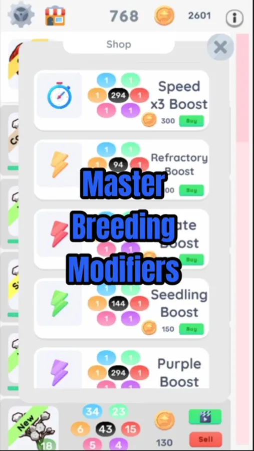 Each new generation has a chance to mutate depending on certain factors, which can be leveraged to create special breeding lines to increase the gene pool.