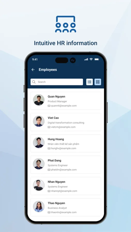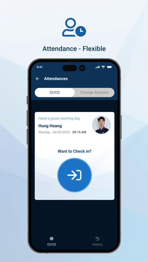- Attendances: Check in/ Check out linh hoạt, dữ liệu chấm công cập nhật theo thời gian thực.