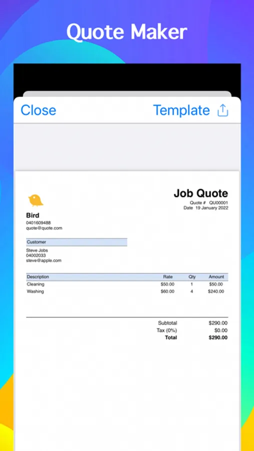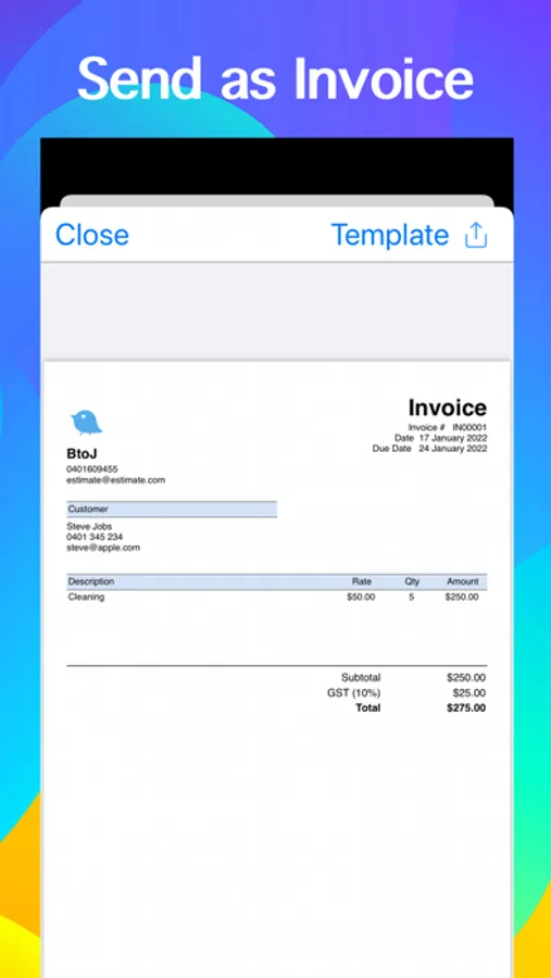 Create and send professional job quotes on the spot. Turn quotes into invoices by a single tap. Close more business deals.