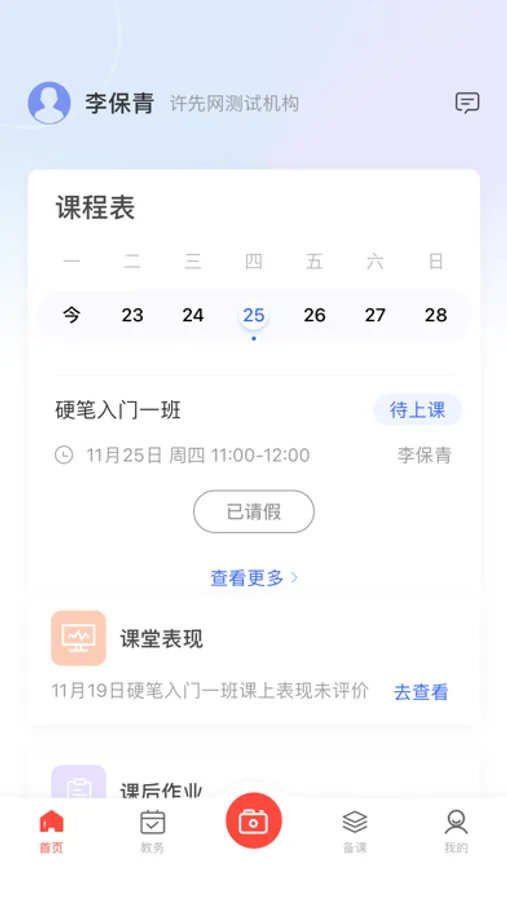 墨香美育教师端是提供给机构教师的移动教学工具,满足教师随时随地备课、查询课程安排、学生考勤记录等业务需求。支持在线发布/批改作业;课上表现点评;在线备课等实用功能,使教师可以充分利用空闲时间完成琐碎工作。