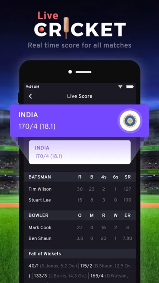 Cric-Live Cricket Scores provide ball-by-ball live cricket score updates for all live cricket matches. You will receive the following benefits from the app:
