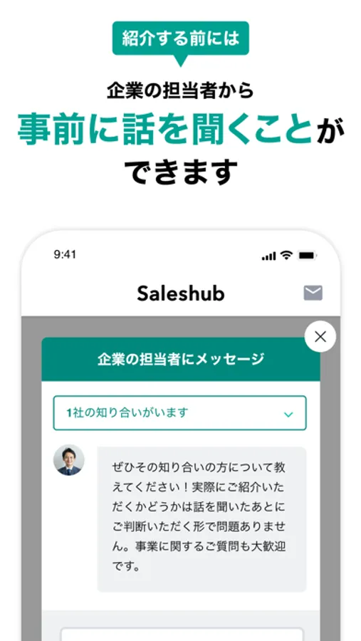 Saleshubは25,000人以上が登録する国内最大級の顧客紹介マッチングサービスです。