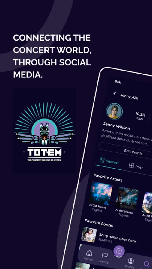 -On Totem, you have the ability to tag the artist, song, and event you attended in each post. Each artist has a unique page where users can find their top songs, posts that users tagged them in, and also upcoming events they are playing at! Also, each event has its own page where users can find the lineup, set times, connect with other attendees, and see posts from other users that tagged the event.