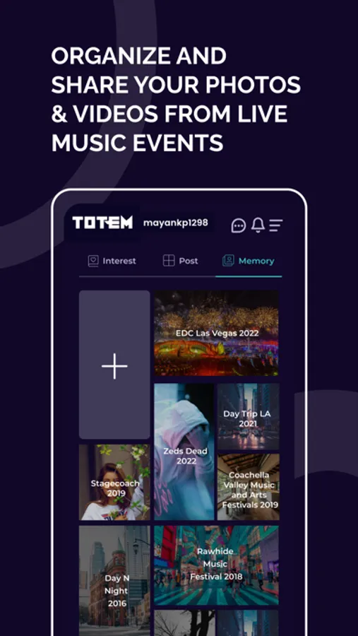 -No more scrolling through your camera roll to find ‘that one video from Coachella in 2017.’ With Memories, you can easily upload all of your past concert content into folders that are organized both chronologically & by the name of the event. Each photo & video in Memories can be made private or public, we have your back.