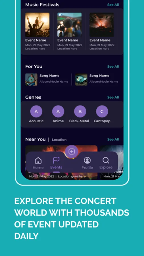 -Explore thousands of concerts and music festival pages updated daily. Our Event Page is broken down into Featured Events, Top Music Festivals, Top EDM Festivals, For You (based on your location), and Upcoming Festivals. Find lineups, set times, RSVP to each event, and repost the event to your feed to share with your followers.