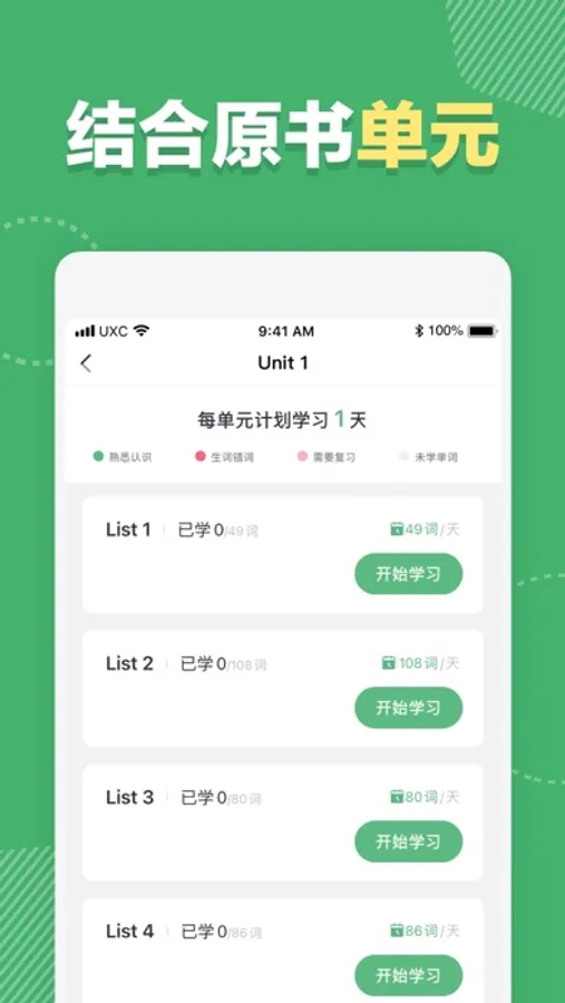 此外,为了完全结合实体书学习,用户还可以设置按单元模式学习,任意选择自己需要的单元进行学习,将实体书和APP学习的效果发挥到极致。