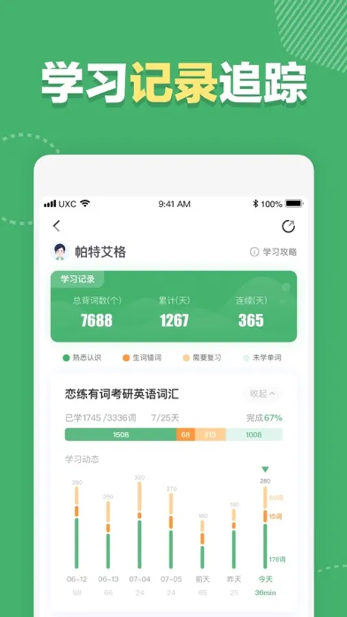 同时,每日背单词均附有详细的学习数据记录,可以查看自己对单词的掌握程度,成为学习新单词、复习已学单词的参照物。