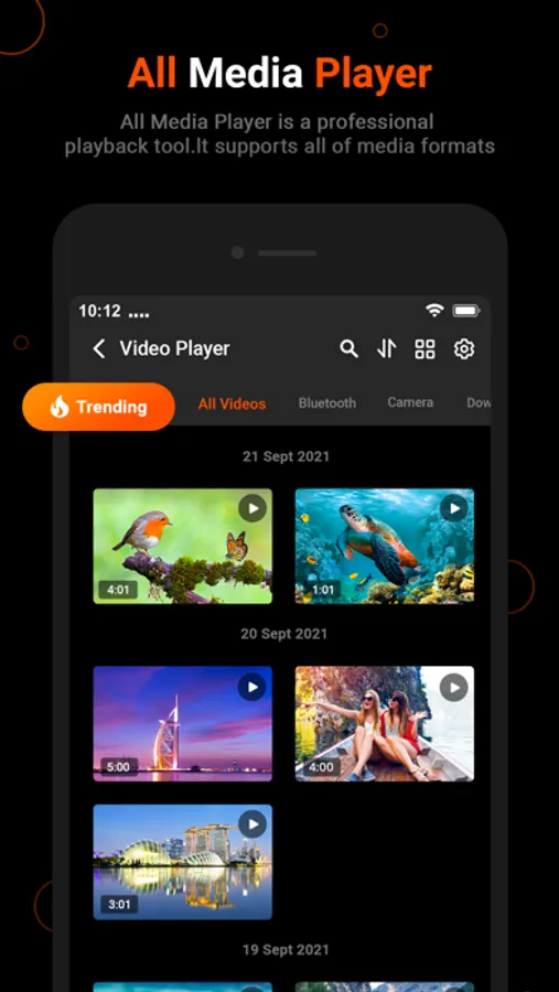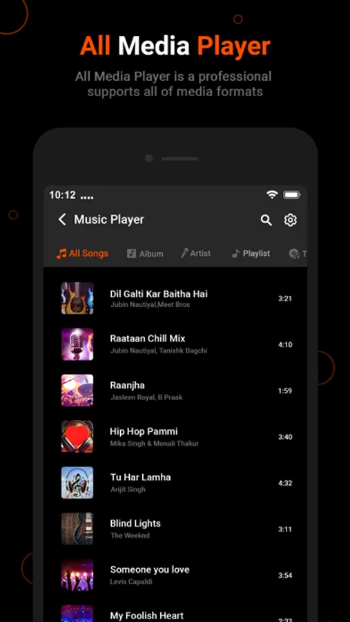 Not only is it an MP3 player, but the Music Player also supports all music and audio formats, including MP3, MIDI, WAV, FLAC, AAC, APE, etc., and plays them in high quality on an HD video player.