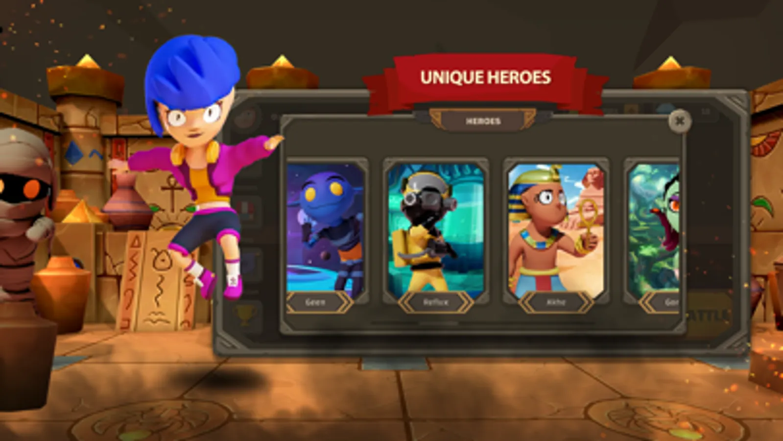 Unlock a lot of Amarnian brawler hero with powerful super abilities and upgrade them with your skill points! Increase your experience and golds by fighting on different maps in Amarna's Metaverse.