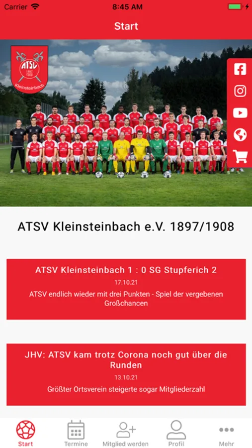 Ab sofort sind nicht nur unsere Mitglieder sondern auch der Verein mobil. In unserer eigenen App könnt ihr euch unter anderem über Aktuelles aus dem Verein informieren, Sportangebote suchen, Termine einsehen und Fan-Reporter werden. Der ATSV Kleinsteinbach e.V. 1897/1908 bietet mit dieser App interessante Einblicke für Fans, Mitglieder und Interessierte.