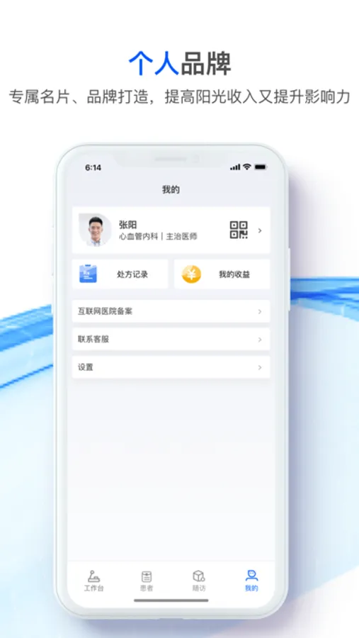 医生认证后获取专属自己的二维码,患者可扫描二维码与医生建立关系,方便患者快速找到医生和购买服务,进而更好提升医生个人品牌形象。