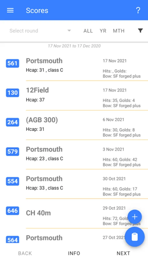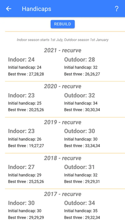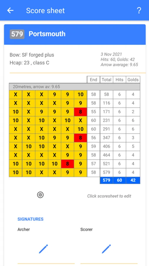 You can enter scores for rounds you have previously shot, or score a round whilst shooting. All World Archery rounds are supported along with Aussie rounds, and you will see your saved sight marks whilst shooting a round, so you can't go wrong (we hope).