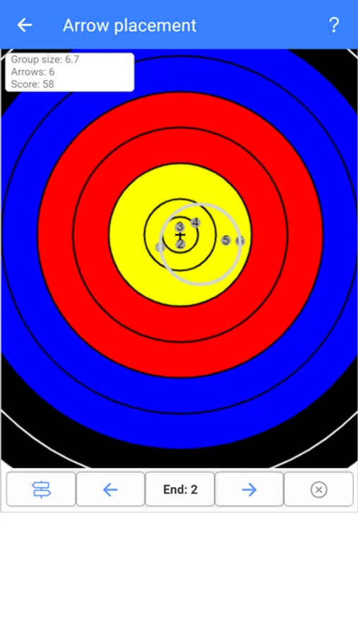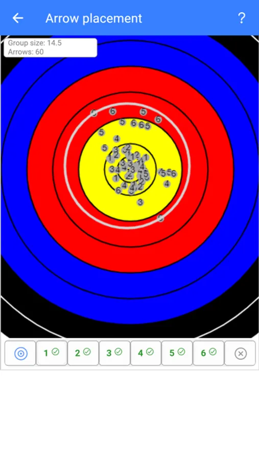 You can record scores as on a conventional scoresheet, but entering the arrow values - or - you can switch to target mode, which allows you to place the position of your arrows on a view of the target - you can then use this inofrmation to see where individual numbered arrows go over a number of ends....and...it looks cool....