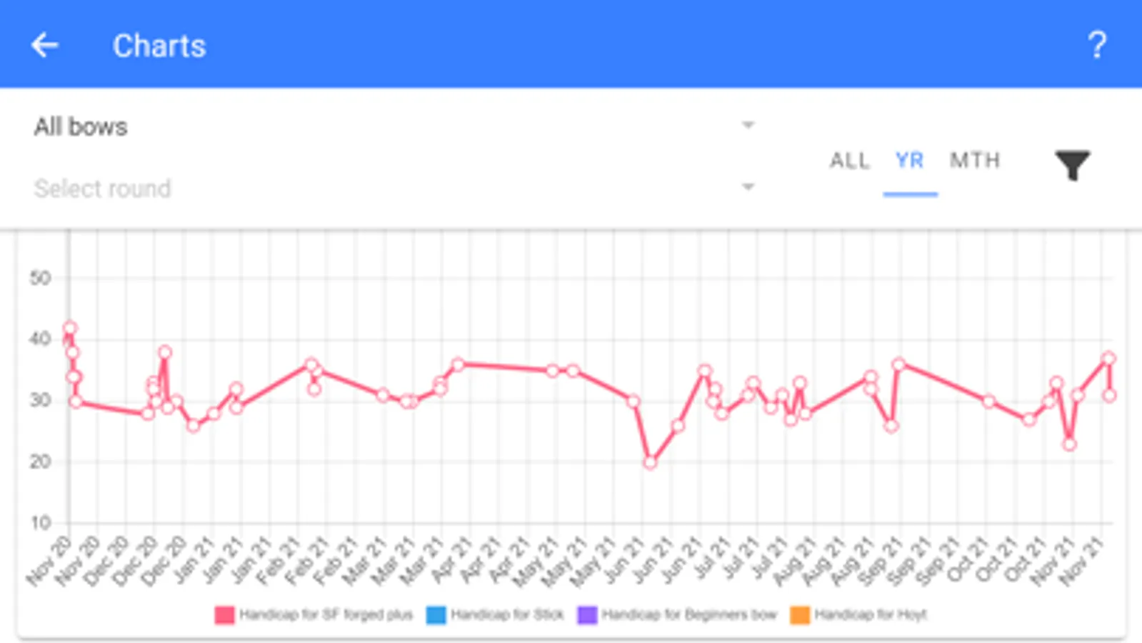 The app tracks high scores for practice, competition conditions and tournaments, so you can easily see PBs for different conditions and bows.