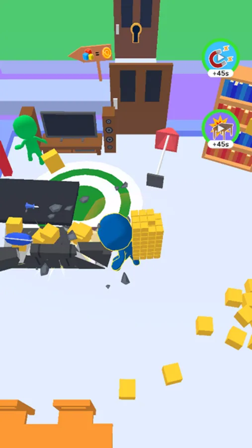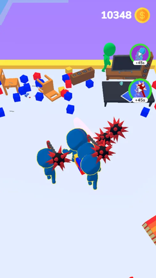 Enter rooms and break everything to gain gold. Then power up your stuff and crew