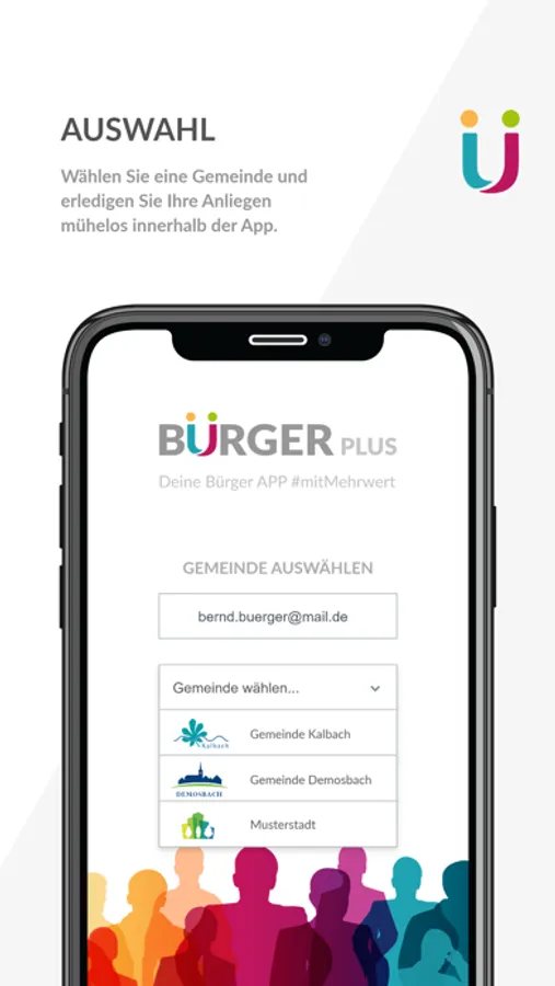 Für die Nutzung der Bürger Plus App benötigen Sie ein Konto in der RathausCloud Ihrer Stadt oder Gemeinde. Sie haben noch keinen Login? Dann registrieren Sie sich ohne weiteres in der App.