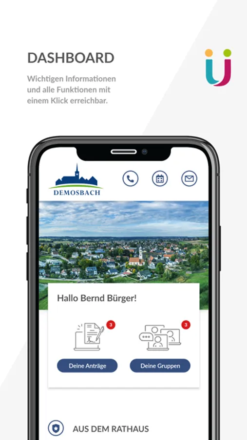 Egal ob von zu Hause, vom Arbeitsplatz oder unterwegs: Mit der Bürger Plus APP sind alle wichtigen Informationen, News, Events und vieles mehr auf einen Blick verfügbar. Sie können einfach und bequem Anträge bei Ihrer Stadt oder Gemeinde einreichen. Dank der Terminvereinbarung und Kontakt-Funktion sind Anliegen schnell geklärt. Holen Sie sich das Bürgerbüro mit der Bürger Plus APP quasi direkt zu Ihnen.