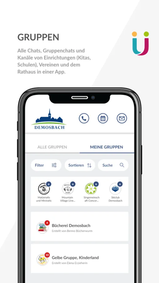 Sie können untereinander, mit Einrichtungen und mit Rathausmitarbeitern zu Ihren Anliegen chatten. Alle Chats und Kanäle des Gemeindeleben gebündelt in einer App.